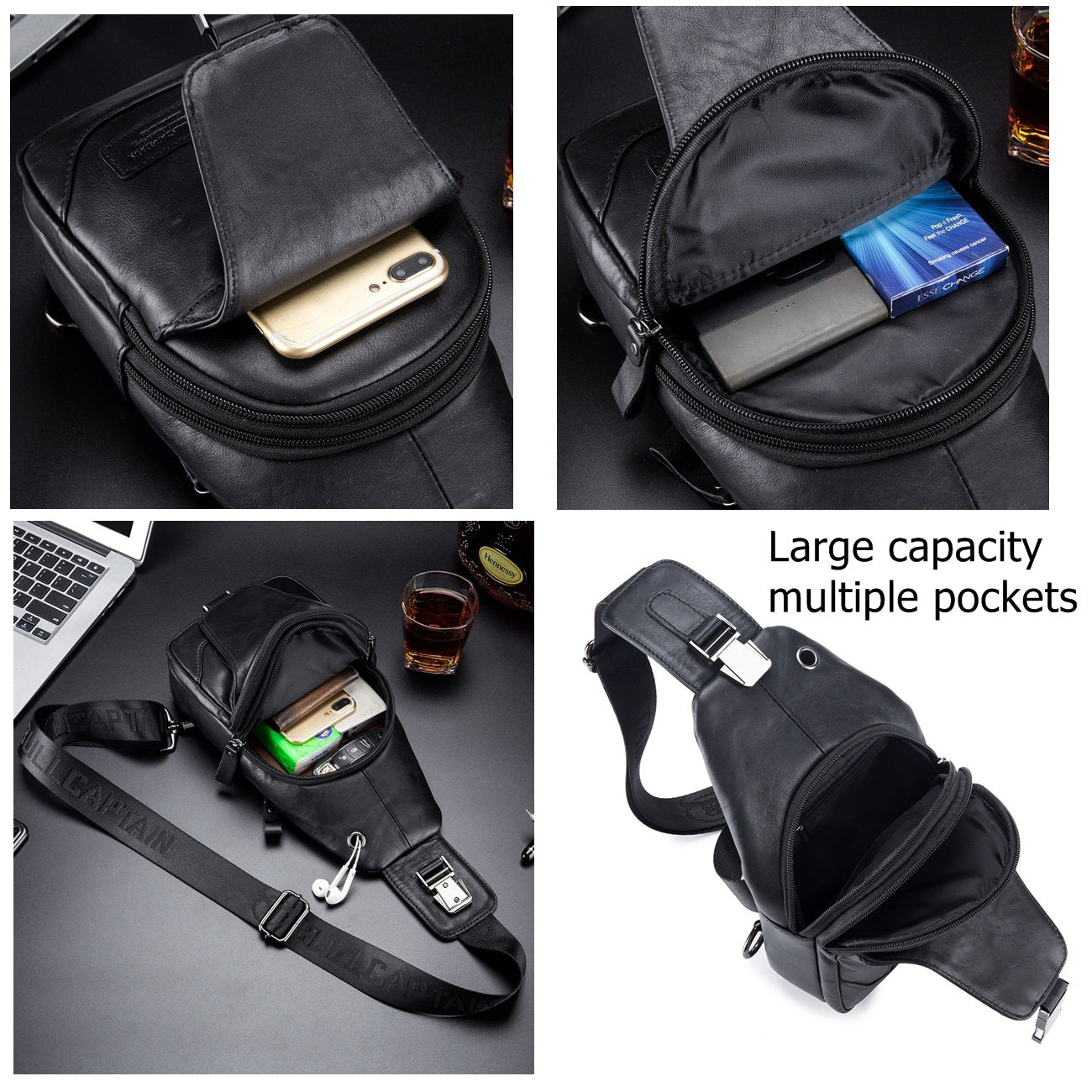 Leather Men Sling Crossbody Chest Bag Travel Shoulder Backpack